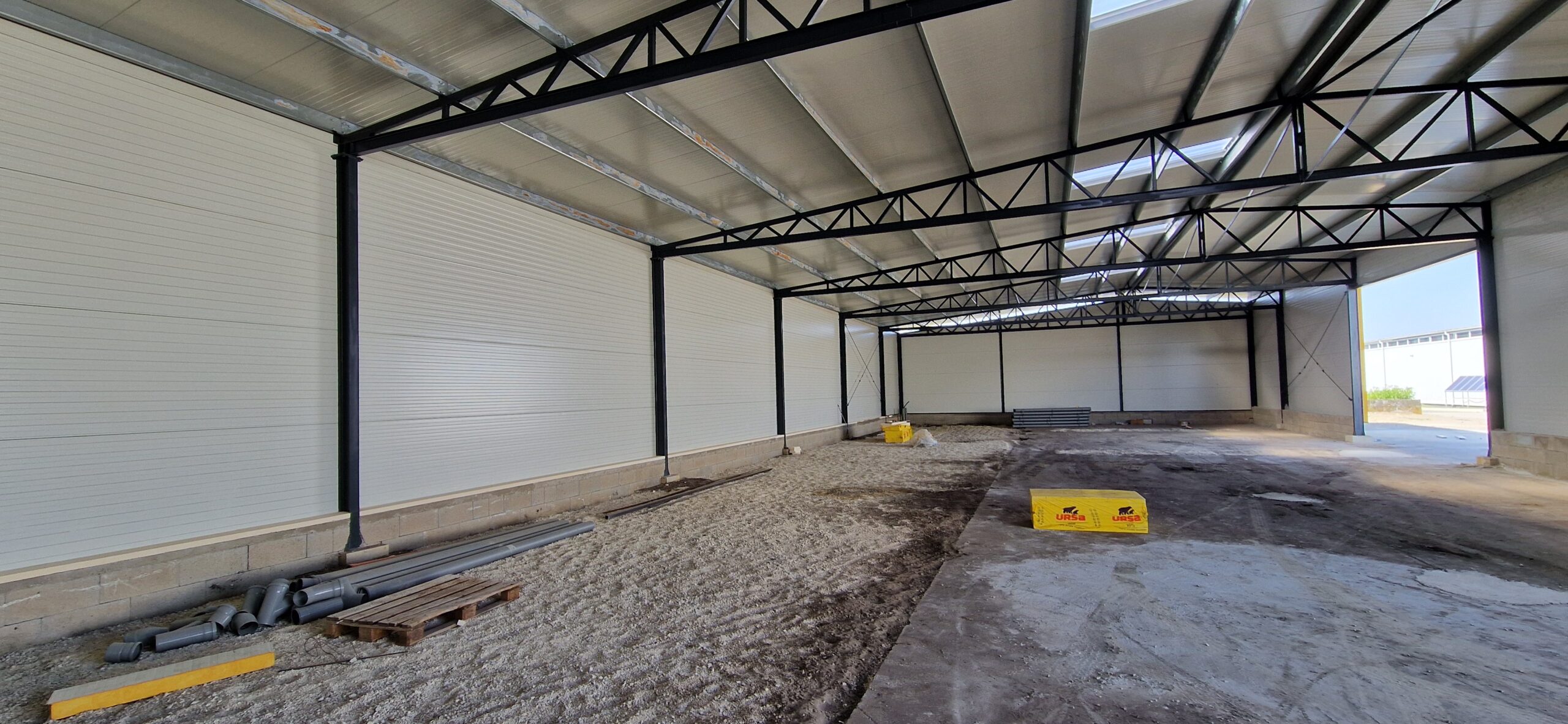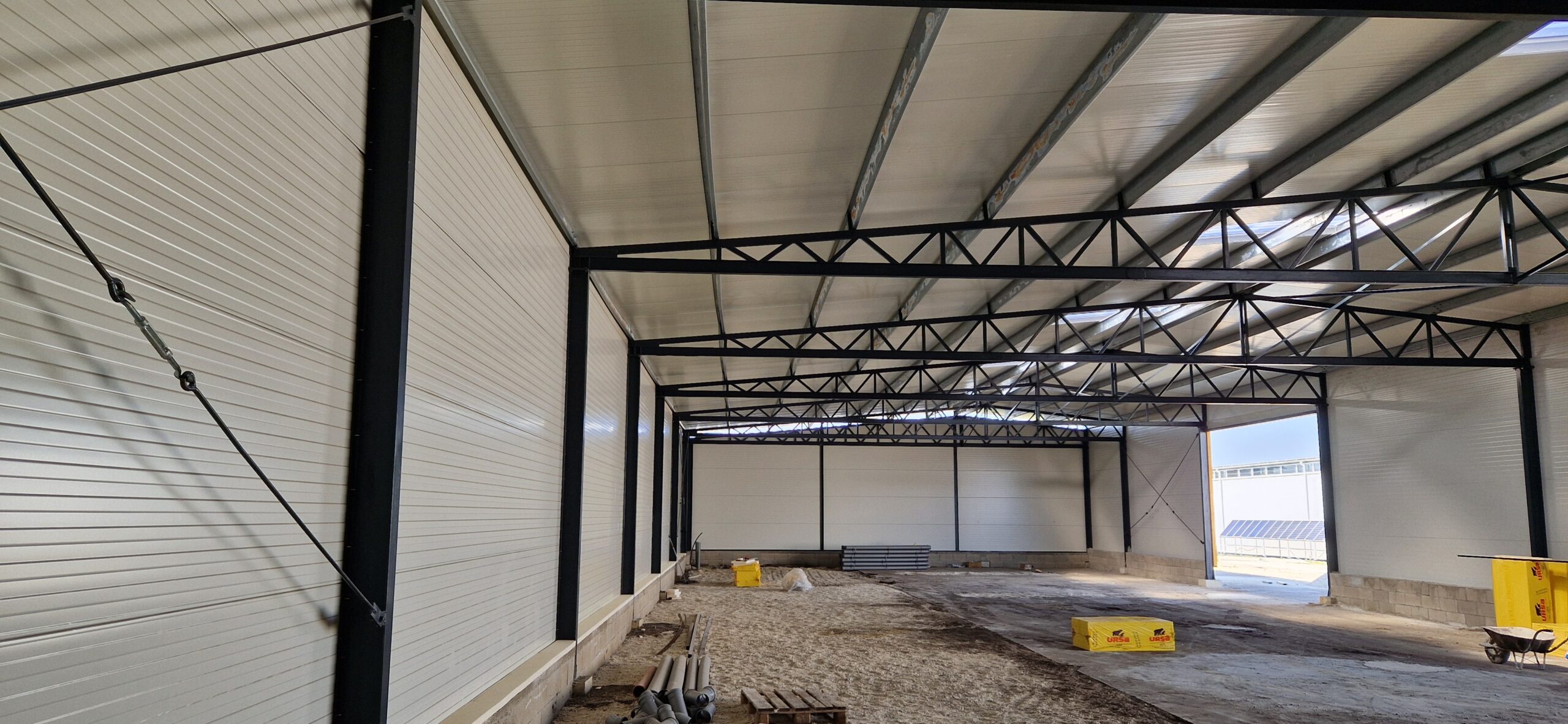 Az épület acél vázas szerkezetű, a burkolat 15 cm vastag PIR szendvicspanelekből áll, amelyek kiváló hőszigetelést biztosítanak. A tetőpanelekbe beépített bevilágító panelek további természetes fényt engednek be, növelve ezzel a komfortérzetet és a munkakörnyezet minőségét.